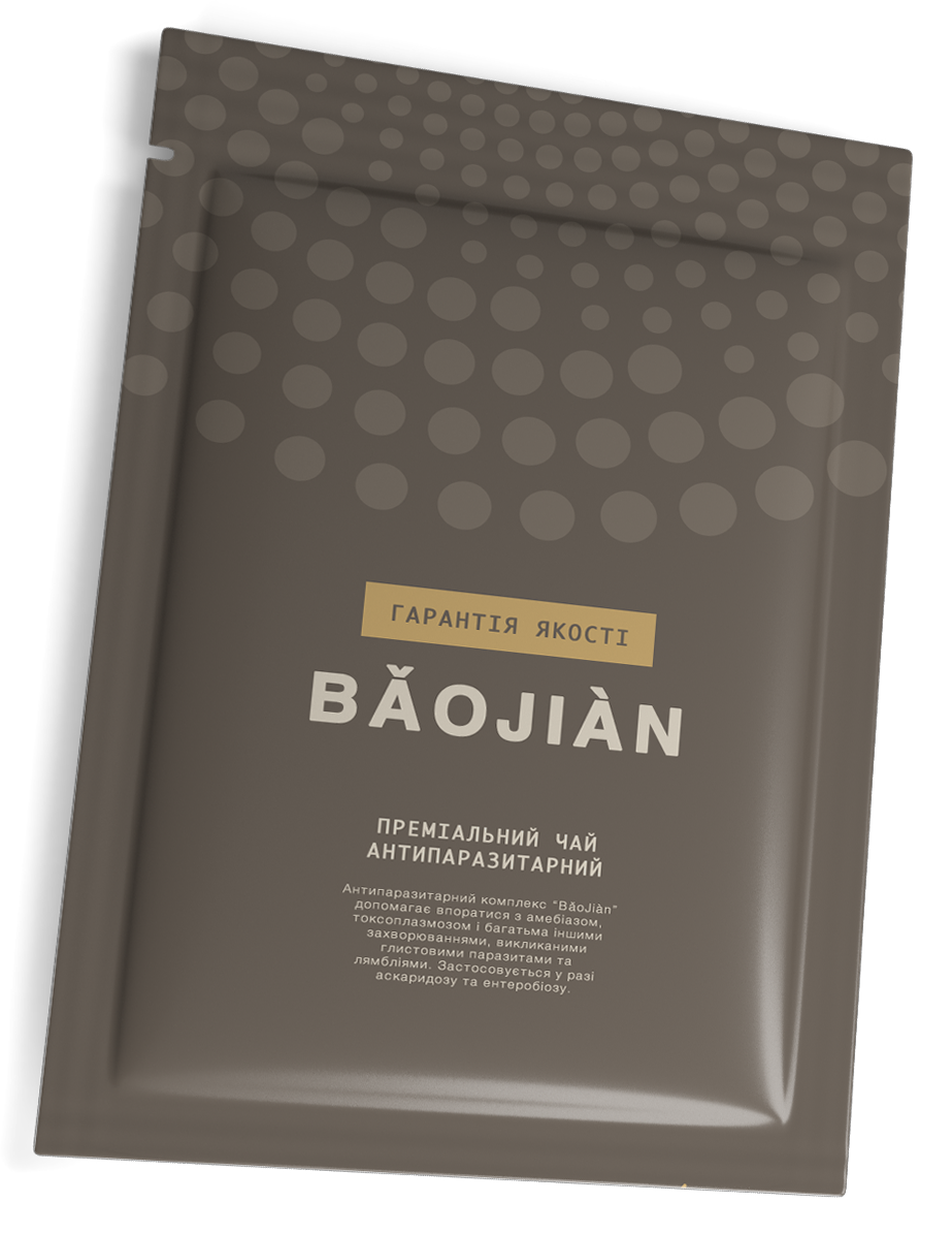 Антипаразитарний комплекс “BǎoJiàn” допомагає впоратися з амебіазом, токсоплазмозом і багатьма іншими захворюваннями, викликаними глистовими паразитами та лямбліями. Застосовується у разі аскаридозу та ентеробіозу.